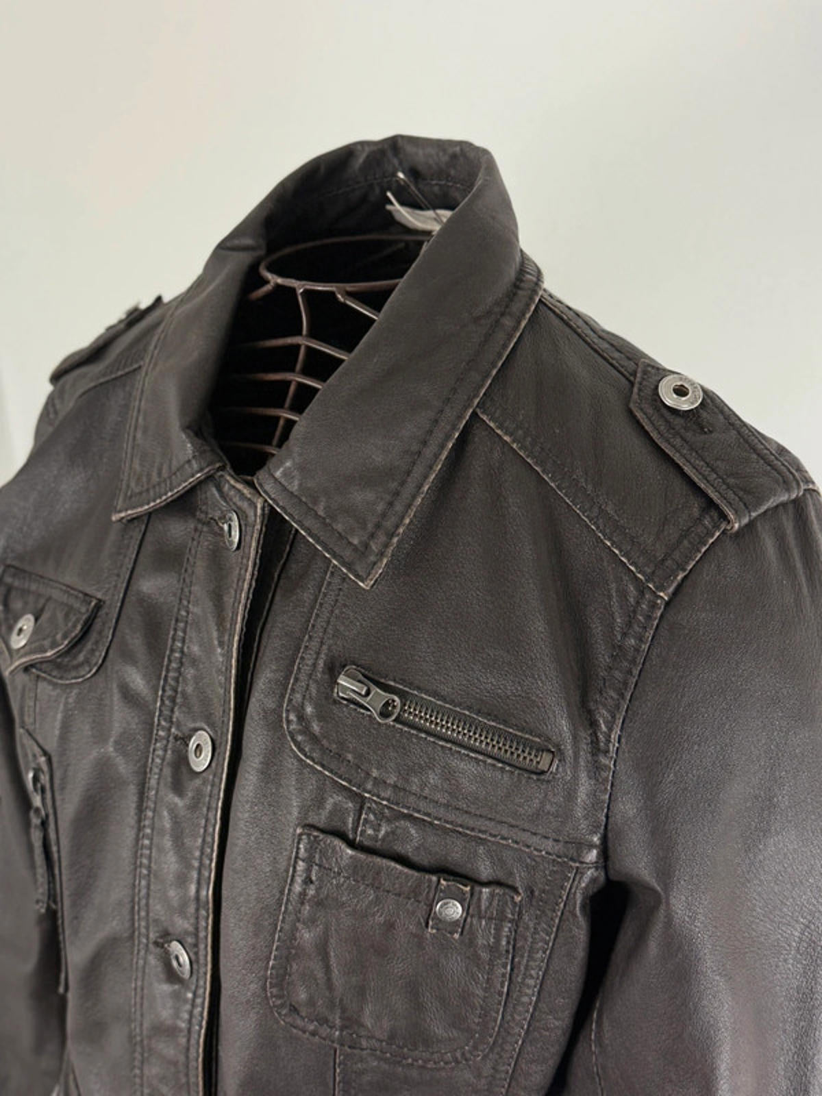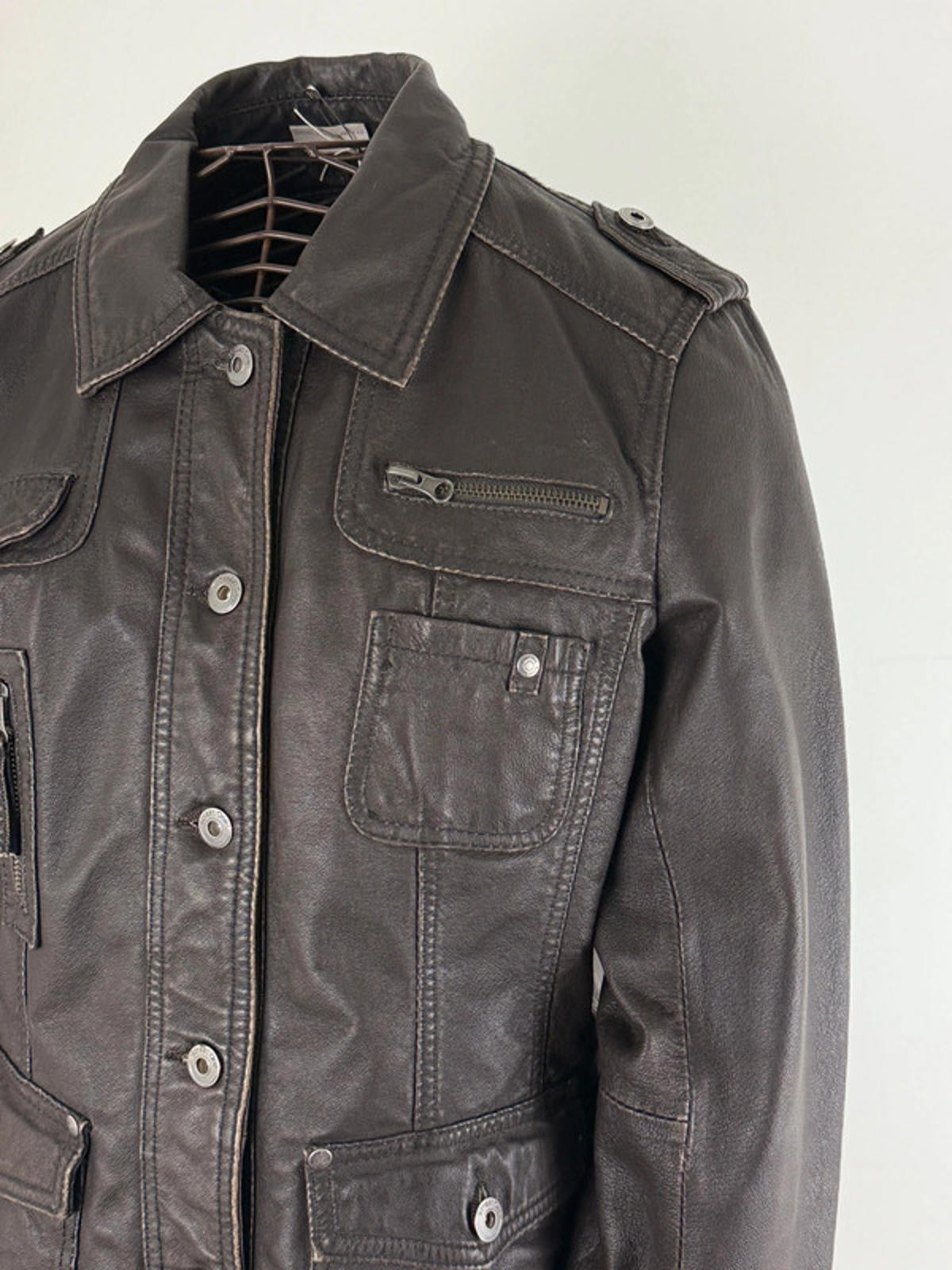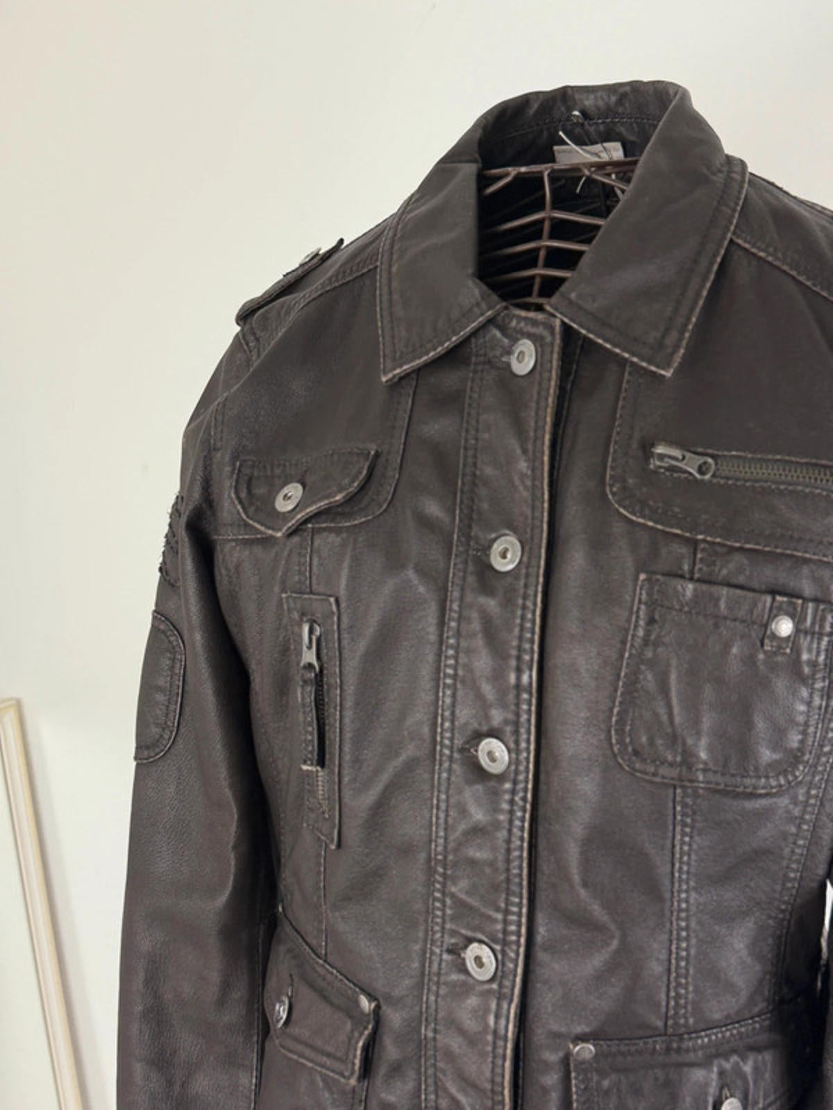 Leather Utility Jacket Brown Size 16 Y2K